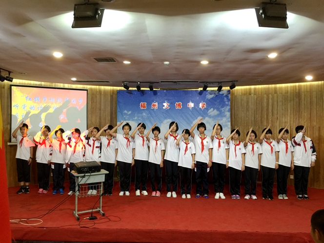 根据共青团福州市教育局委员会《关于做好新学期几项少先队重点工作的通知》精神,开展“红领巾相约中国梦——听党的话,做好少年”主题教育实践活动,贯彻落实习近平总书记系列重要讲话精神,引导我校少年儿童修身立德、志存高远,勤学上进、追求卓越,强健体魄、身心健康,锤炼意志、砥砺坚韧。我校于10月20日为纪念少先队建队67周年,举行“红领巾相约中国梦——听党的话,做好少年”系列主题队日活动。出旗、呼号、唱队歌,少先队员们用最饱满的精神参与在活动中。之后年段长宣布了初一年段18名大队委名单。此次活动还颁发了主题手抄报,黑板报的奖品。选出的优秀作品将参加市级评选。最后我们郑书记勉励少先队员们养成良好的习惯,好好学习,天天向上,成为有理想、有道德、有文化、有纪律的“四有新人”。