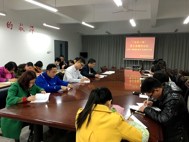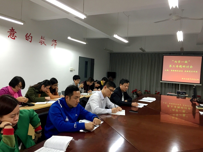 为深入推动我校“两学一做”学习教育活动,11月23日下午第四节,我校在五楼会议室召开“两学一做”第三专题研讨会,研讨会主题为“坚持根本宗旨 发挥党员作用”。全体教职工党员参加会议,郑宝生书记主持会议。
