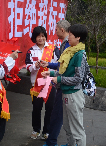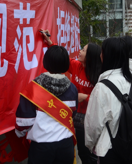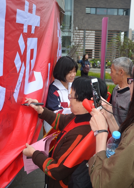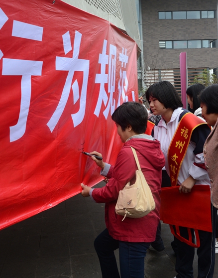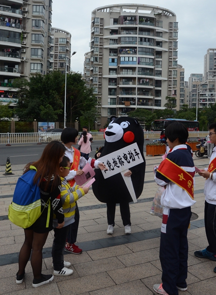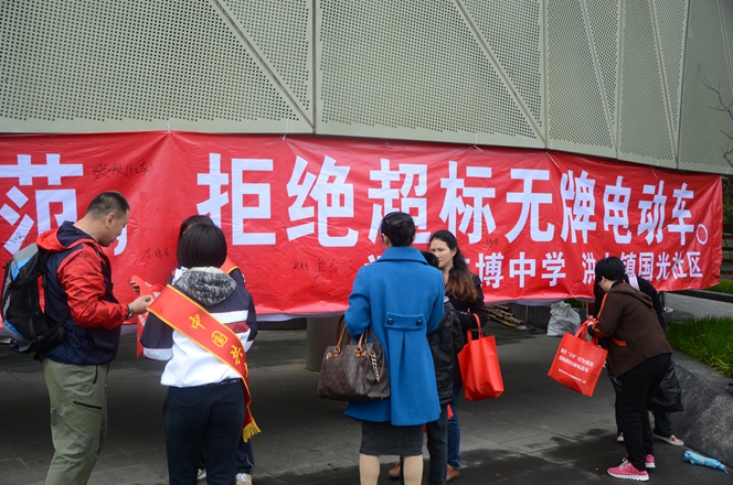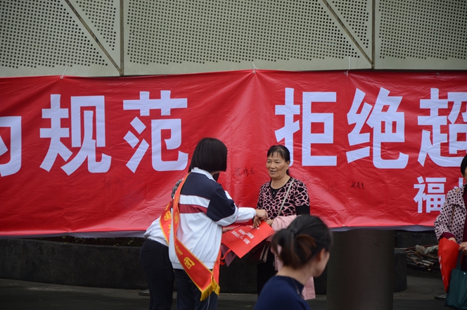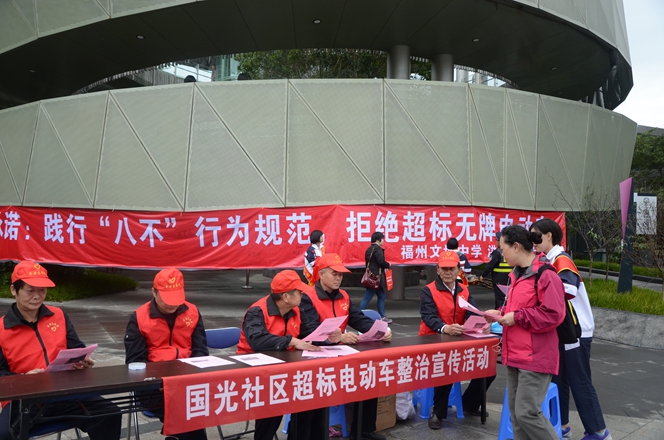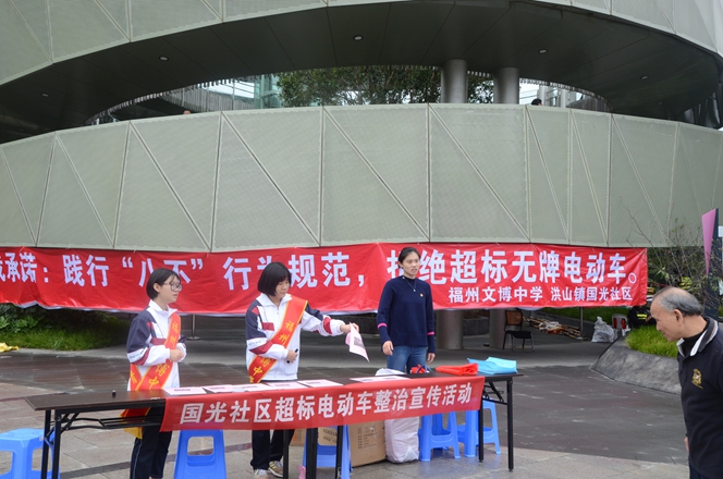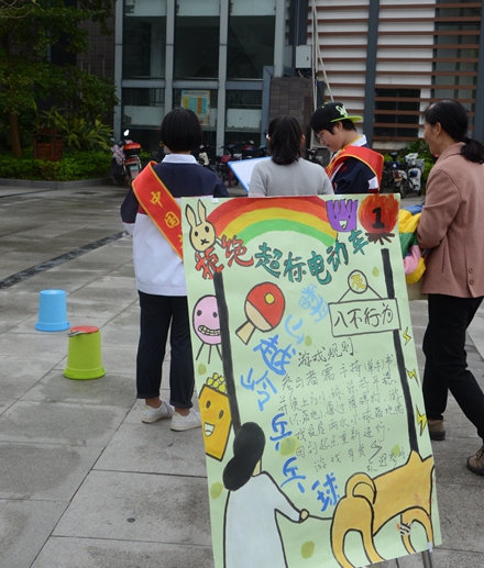 活动现场,志愿者们为市民认真讲解了我市关于整治超标、无牌电动车工作要求,号召广大市民拒绝超标、无牌电动车,为建设文明、畅通的福州交通环境共同努力。参加活动的市民们纷纷在承诺横幅上签下自己的名字,共同表达对整治工作的支持。团委学生干部同时利用发放宣传小购物袋、小体育游戏、宣读“八不”行为规范等活动项目让前往福道健身的孩子们参与到文明宣传活动中来。希望通过此次志愿者活动,动员更多的市民共同参与、维护我们的文明交通,让我们一起做出承诺:“践行‘八不’行为规范,拒绝超标电车”!