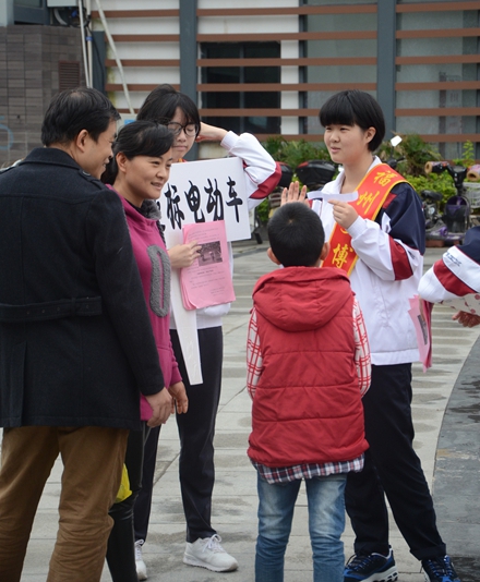 今年的12月5日是第31个国际志愿者日,为大力弘扬“奉献、友爱、互助、进步”的志愿者精神,进一步动员广大青年学生踊跃投身志愿服务,引导他们在实践中奉献爱心,在奉献中提高社会责任感。2016年12月4日,校团委联合洪山镇国光社区组织第十次团学代会候选人与社区志愿者在金牛山体育公园福道入口处以多种形式开展“践行‘八不’行为规范 拒绝超标、无牌电动车”志愿服务宣传活动。