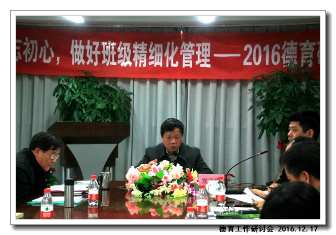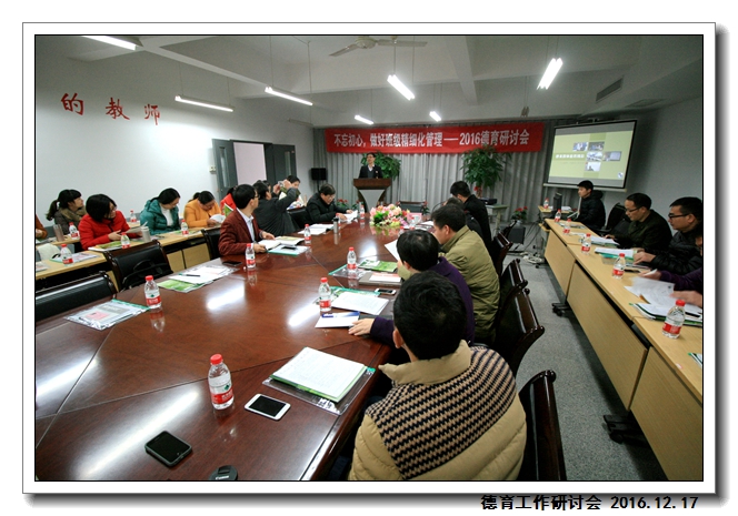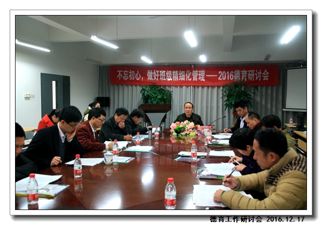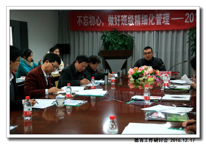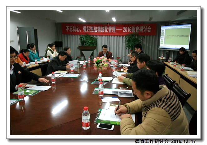 班集体是学校的重要组成部分,也是学校管理工作的重点。为进一步规范班级管理,推进班级的精细化管理,积极探讨班级的新方法、新思路,我校于2016年12月17日组织召开了中层以上干部、年段长、班主任等83人参加的研讨会。会议由德育处吴燕红主任主持。