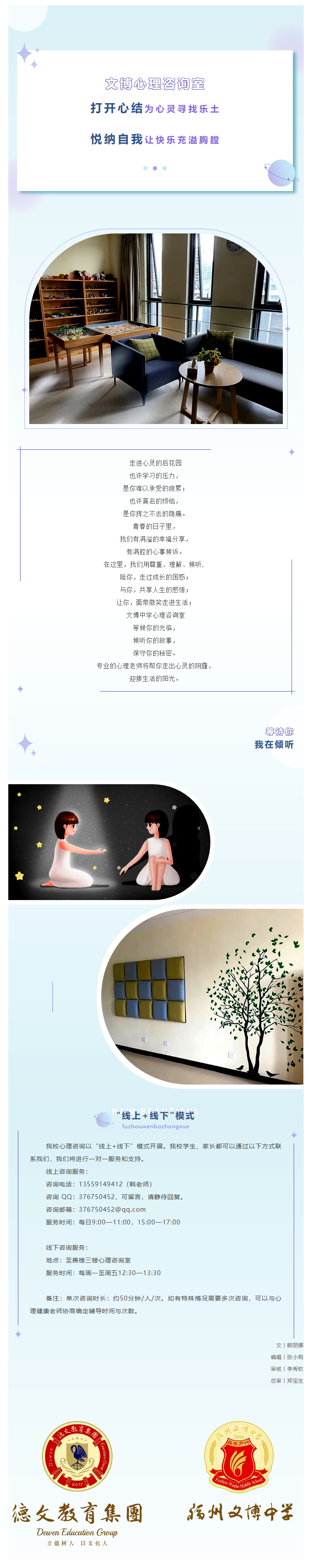 打开心结,悦纳自我丨文博中学线上线下“心理咨询室”同步启动!